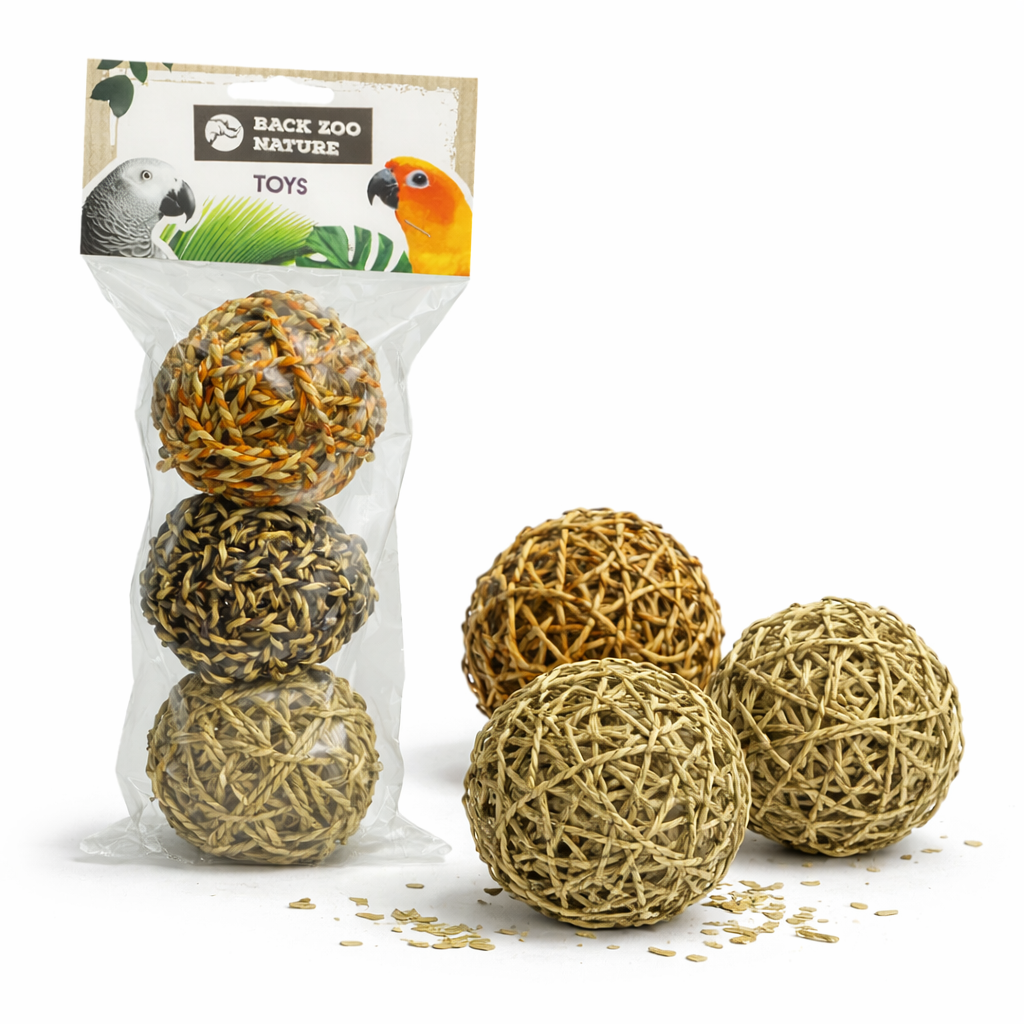 Přírodní míčky z mořské trávy – do tlapky, fantastické, bezpečné a papoušky velmi oblíbené hračky.