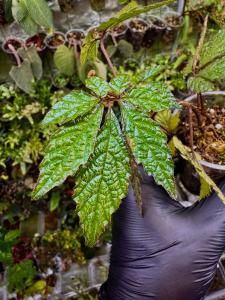 Originální rostlina do terária s tenkými, jemnými listy pokrytými drobnými chloupky, vyrůstajícími z mírně zdřevnatělých stonků. Dosahuje výšky asi 20 cm a díky své struktuře připomíná miniaturní stromek. Její listy tvarem připomínají listy konopí, ale mají mnohem výraznější žilnatinu a texturu.