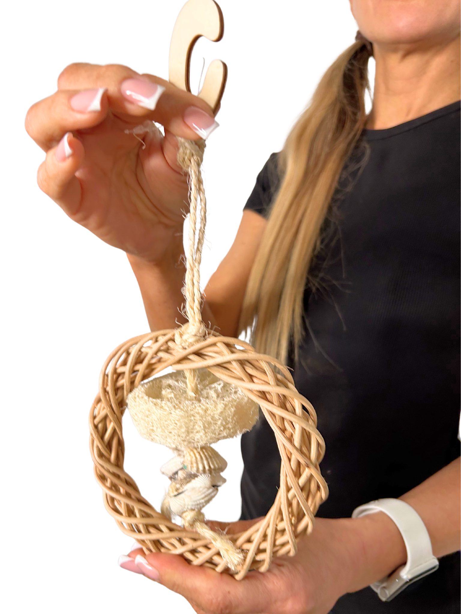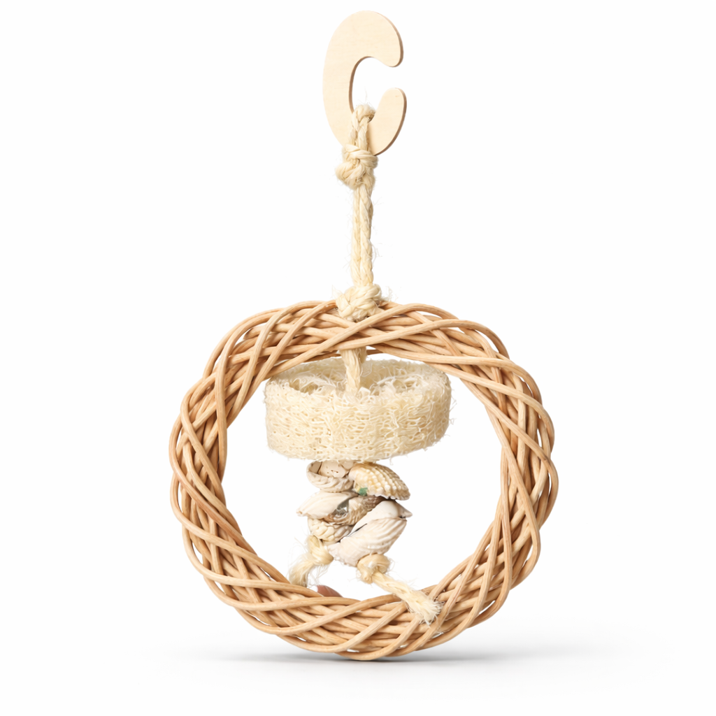 Přírodní zábava: Ratanové kolečko je jedinečná hračka vyrobená z přírodního ratanu, určená pro všechny papoušky, která jim poskytuje autentickou zábavu.