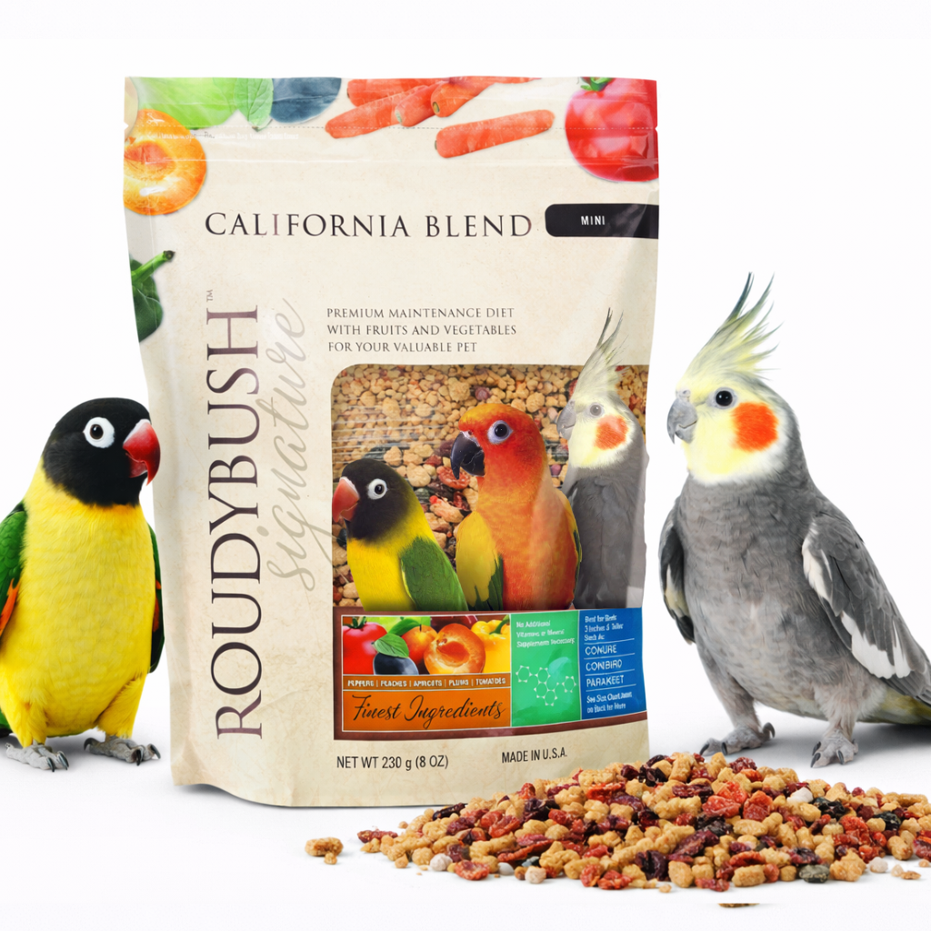 RoudyBush California Blend Mini 1,25 kg – Tropický granulát pro nymfy a jiné menší a střední papoušky