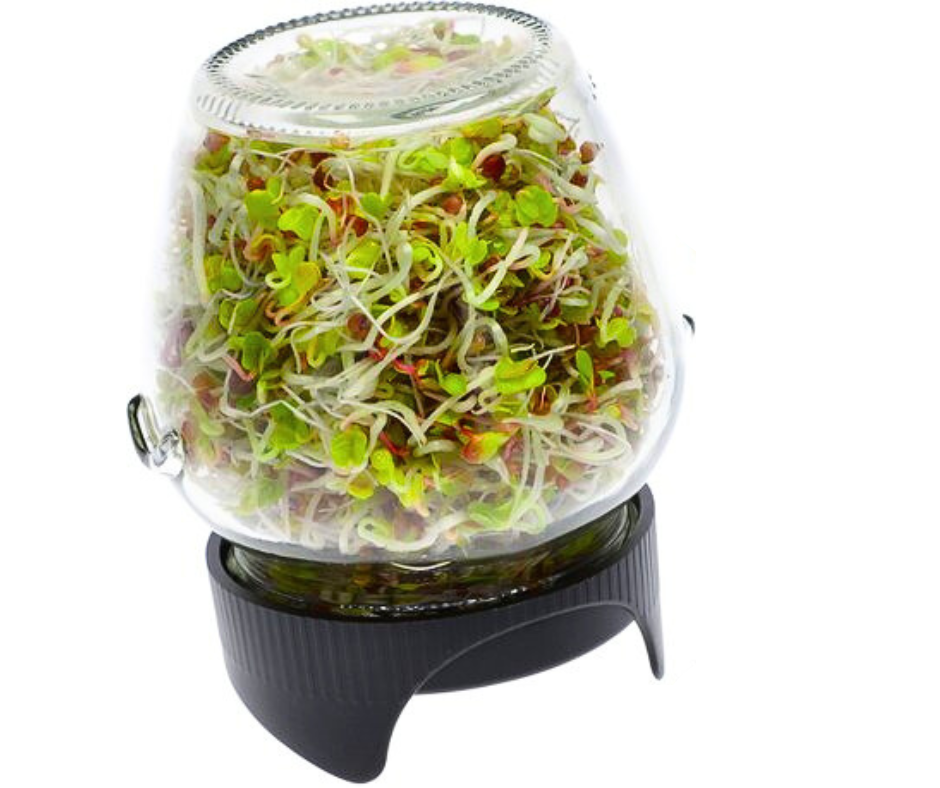 Jednoduché a efektivní pěstování: Náš inovativní klíčící přístroj s odšroubovatelným víčkem umožňuje pěstování klíčků v nakloněné nádobě, což zajišťuje optimální podmínky pro pěstování a správný odtok vody.