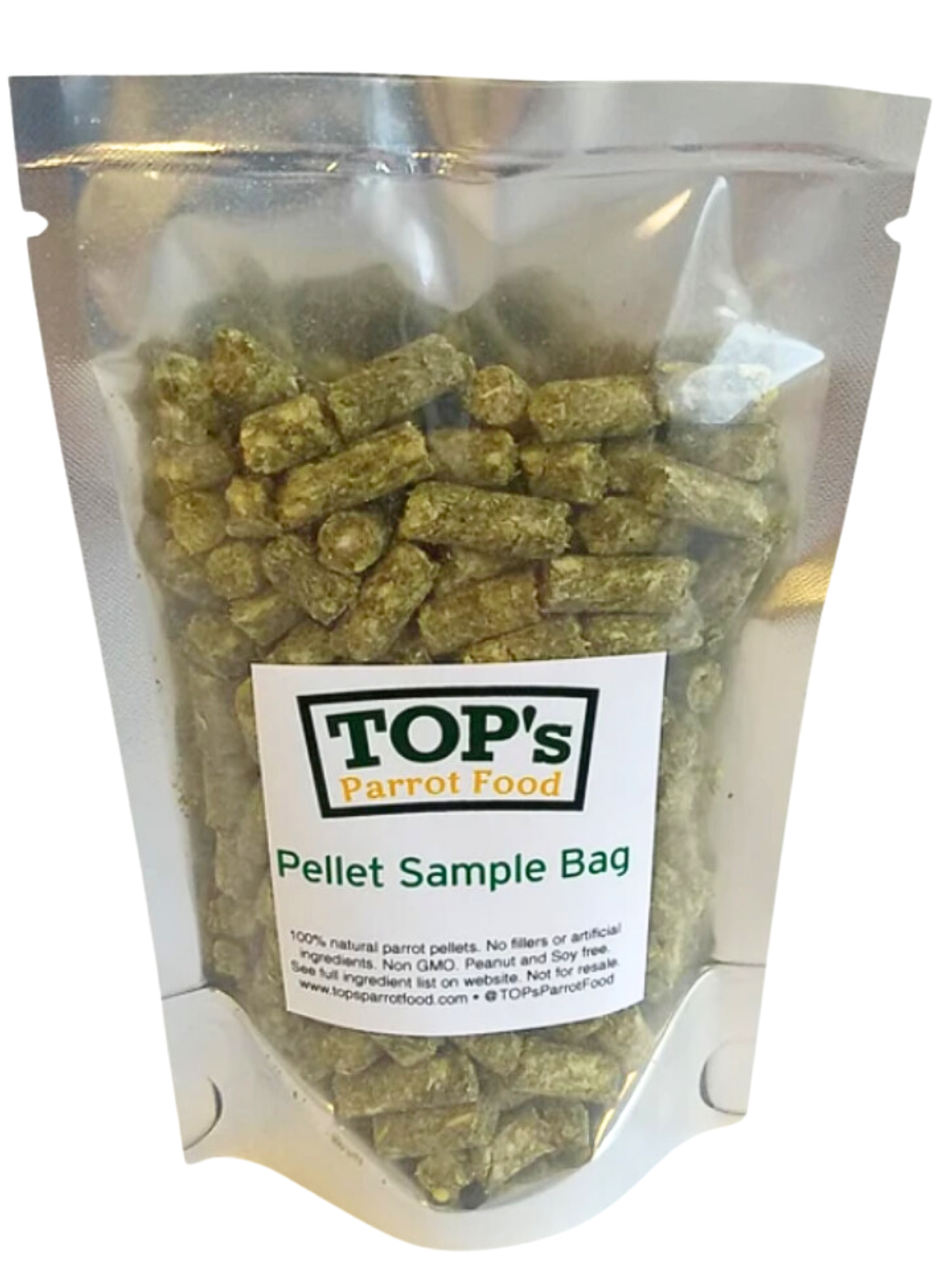 TOP's Parrot Pellets ™ má certifikát USDA Organic a je ideální pro papoušky všech velikostí, od ary po vlnkované papoušky. Tyto charakteristické granule o průměru 0,63 cm jsou vyrobeny výhradně z organických surovin pocházejících ze Spojených států a jsou lisovány za studena, aby si zachovaly všechny přírodní živiny.
