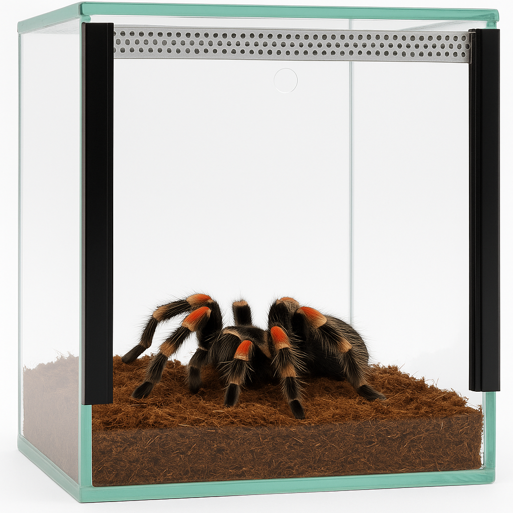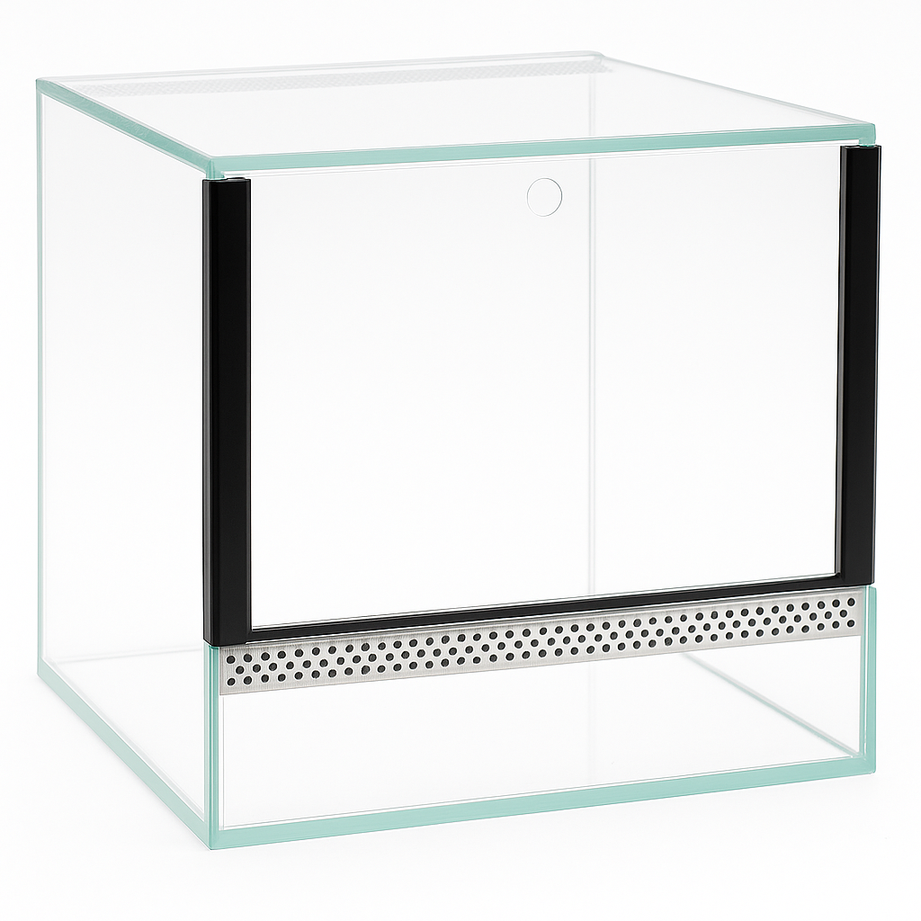 Terárium 25x25x25 cm – Pro suchozemské pavouky | Škorpióny | Suchozemské kudlanky | Suchozemské šneky | Sklo 4 mm, Gilotina, Ventilace nahoře–dole