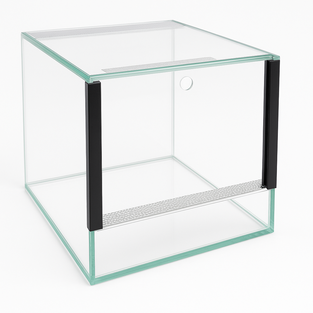 Terárium 30x30x30 cm – pro pavouky, štíry a bezobratlé | Ventilace nahoře–dole, sklo s výklopným víkem