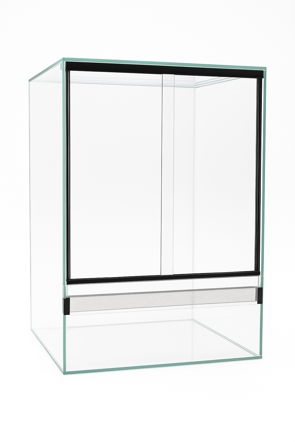 Terárium 30x30x50 cm – Pro gekony | Stromové hady | Pozemní pavouky | Malé stromové plazy a žáby | Sklo 4 mm, gilotina, ventilace nahoře–dole