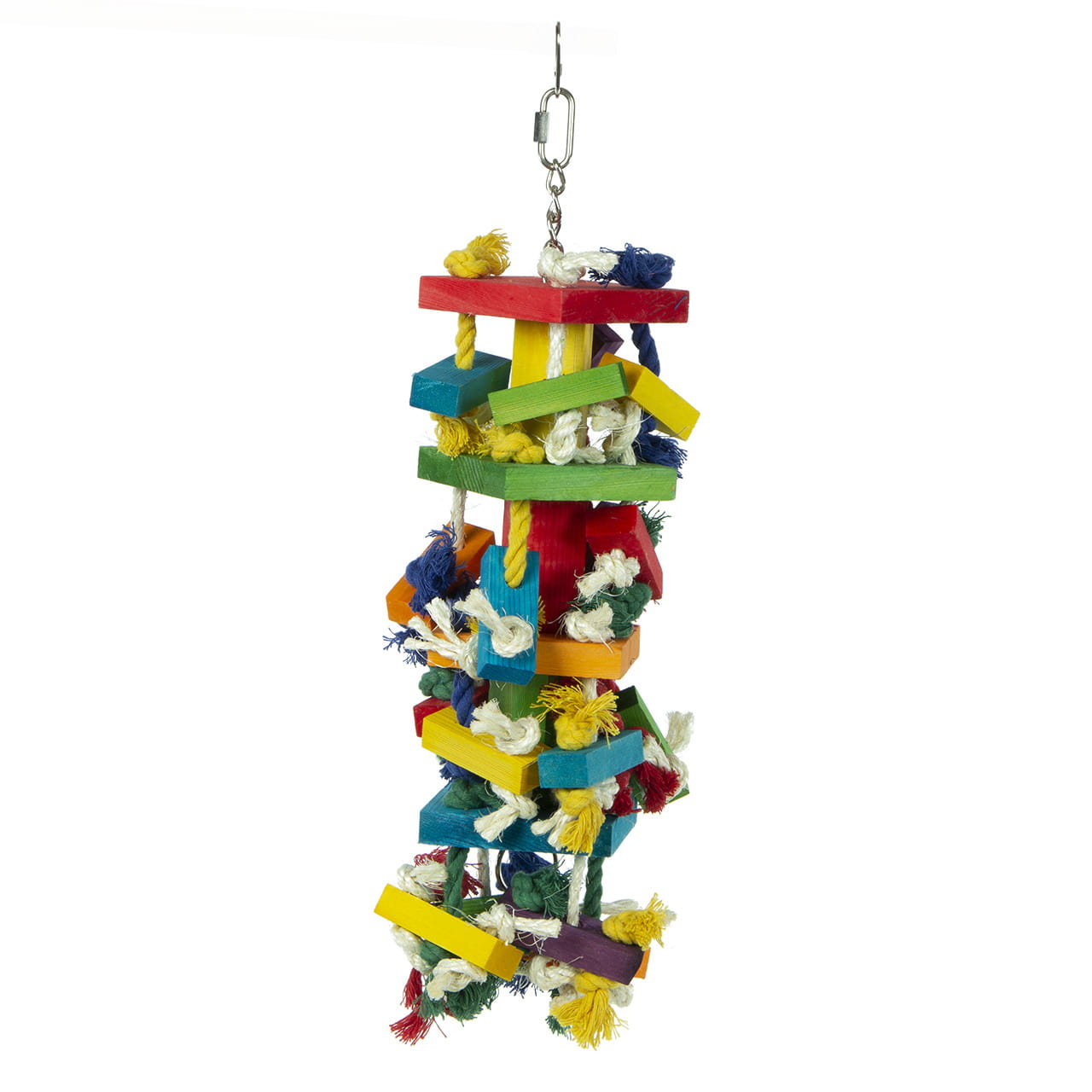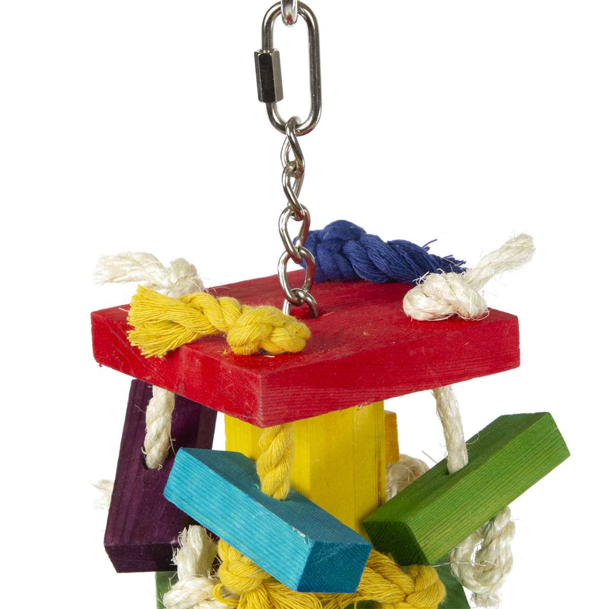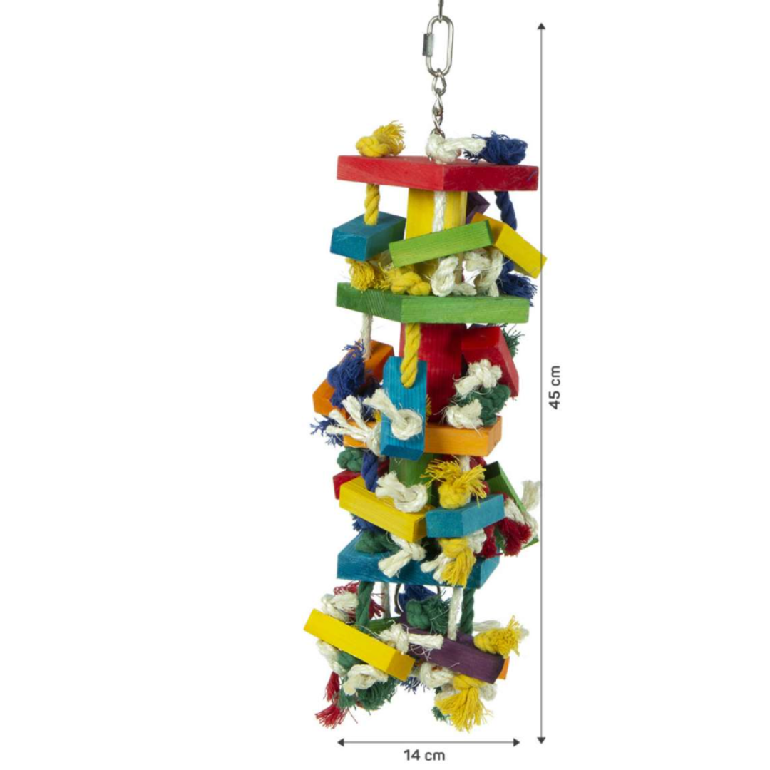 Uzly a bloky jsou jednou z nejoblíbenějších hraček pro papoušky. Jsou na trhu již více než 12 let a neustále se umisťují na předních místech mezi vašimi oblíbenými hračkami. Masivní kousky křupavého dřeva, spojené silnými lany, a to vše postavené na stabilním řetězu z nerezové oceli.