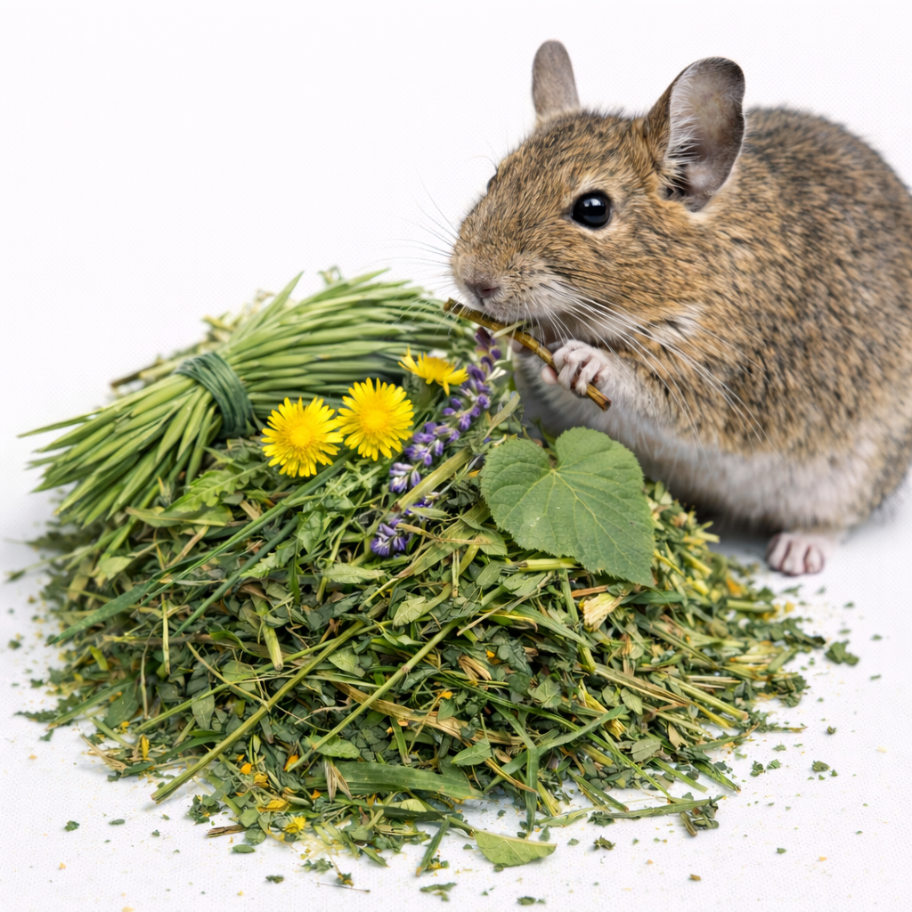 Venkovské bylinky pro činčily a osmáky jsou jemně sušená směs bylin a listů vhodná pro citlivý trávicí systém těchto hlodavců. Složení bylo vybráno tak, aby podporovalo trávení, dodávalo vlákninu a obohacovalo každodenní stravu.