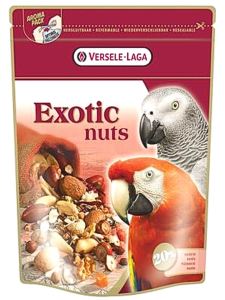 EXOTIC NUTS je krmivo pro papoušky s celými ořechy. Je to směs mandlí, vlašských ořechů, pekanových ořechů a semen a zrn.