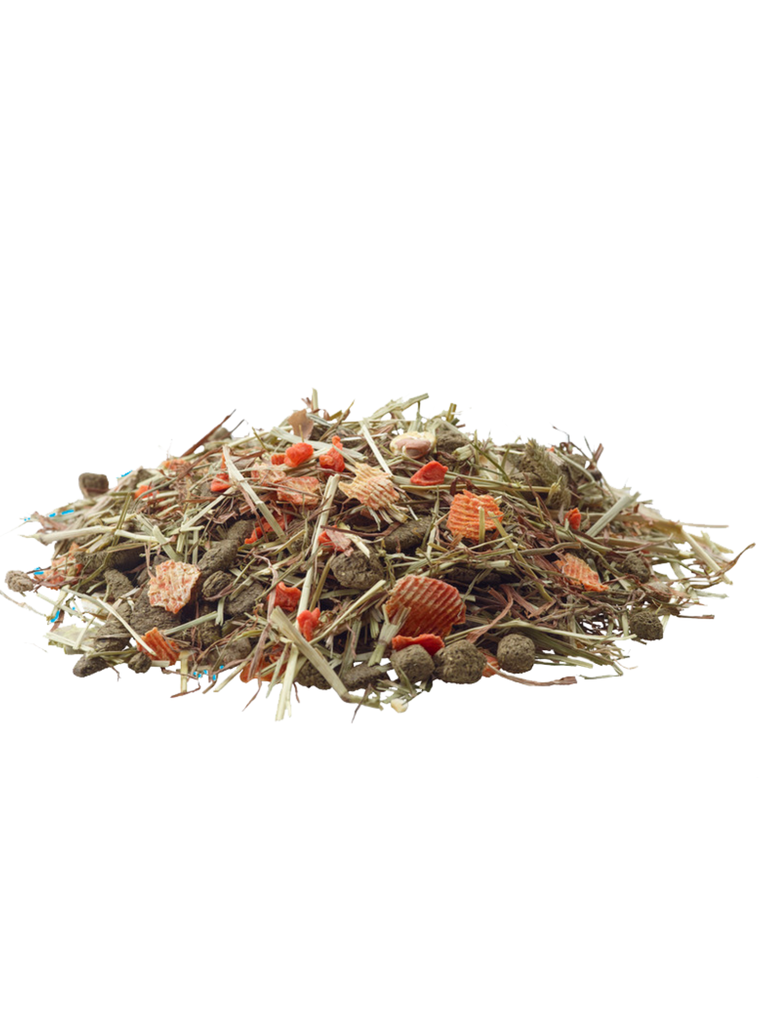 - Bohatství rostlinných složek: Směs obsahuje vysoce kvalitní trávy, byliny a zeleninu, které dodávají nezbytné vitamíny a minerály.