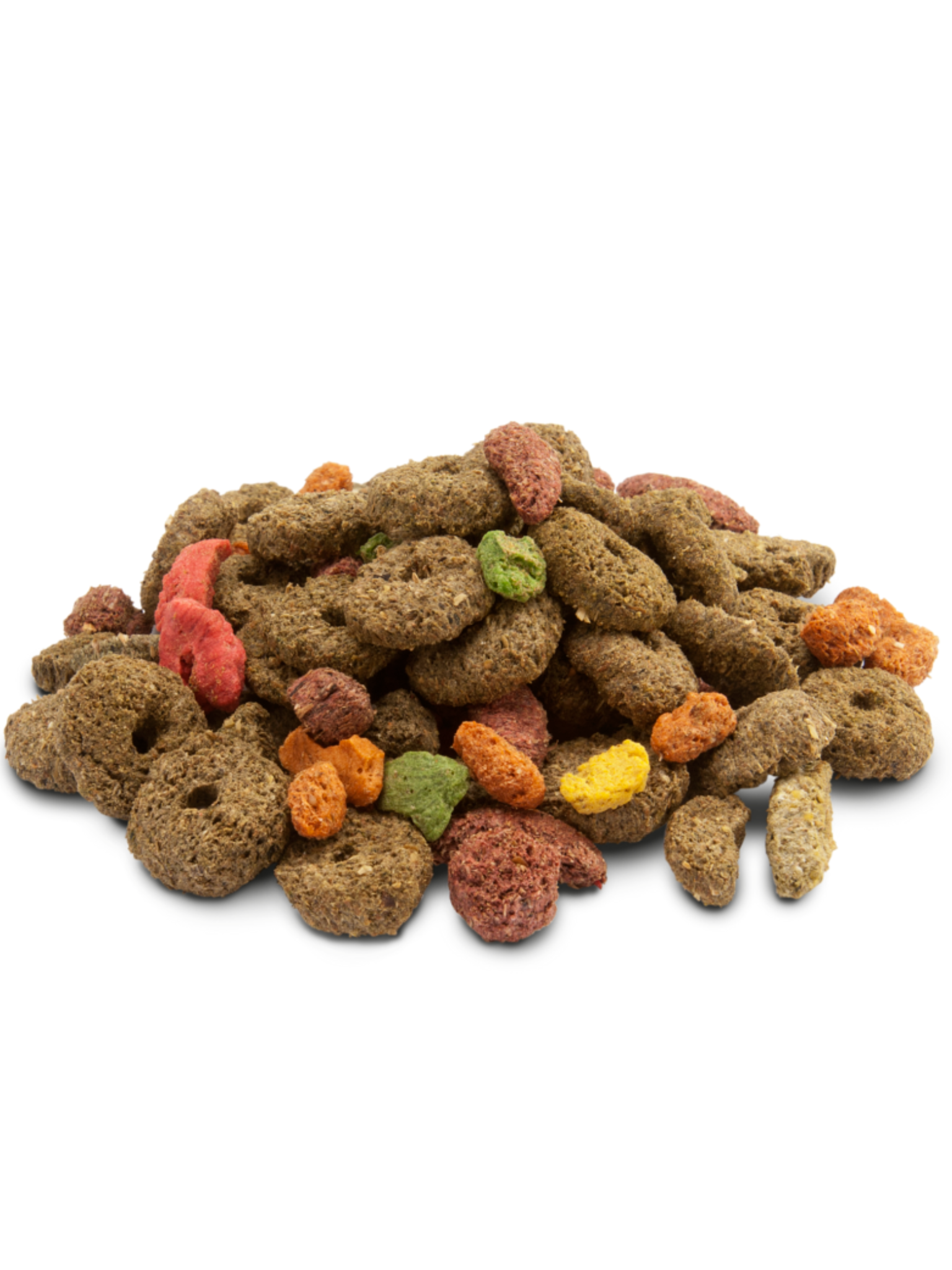 - Rozmanité složky: Obsahuje přírodní zeleninu, semena a bylinky, které dodávají nezbytné živiny.