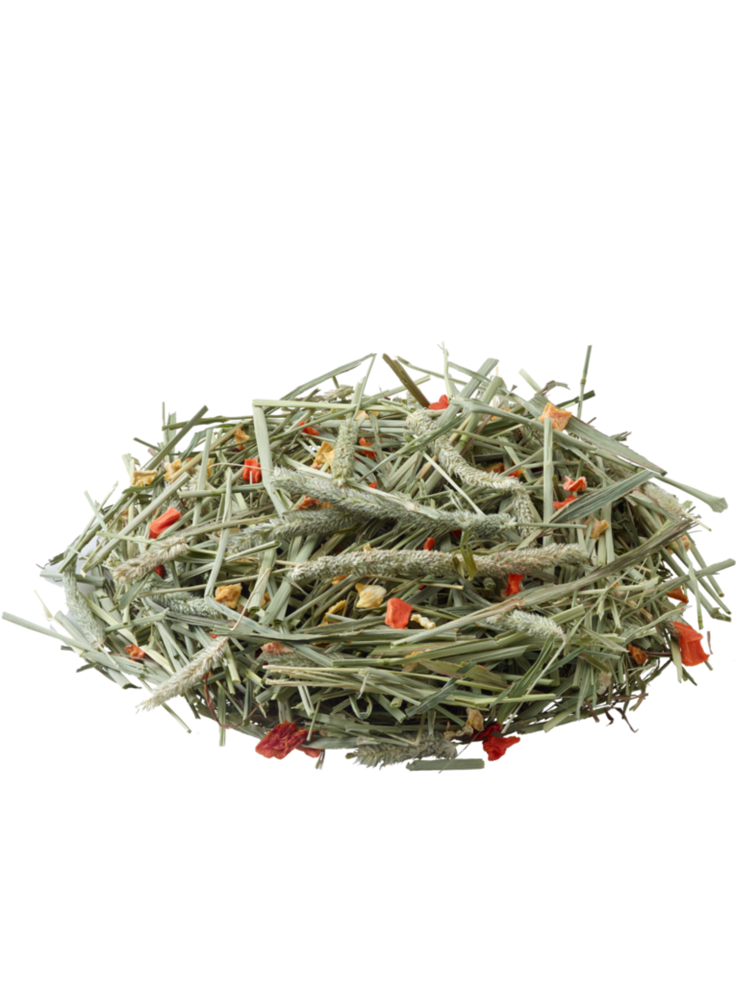 Versele Laga Timothy Hay Carrot & Pumpkin je lahodné seno z timotky obecné obohacené o mrkev a dýni, které dodávají vitamín A a podporují imunitu vašeho mazlíčka. Obsah vlákniny podporuje trávení a pomáhá udržovat zdravé zuby. Jedná se o zdravou, aromatickou pochoutku vhodnou pro králíky, morčata, činčily a agamy.