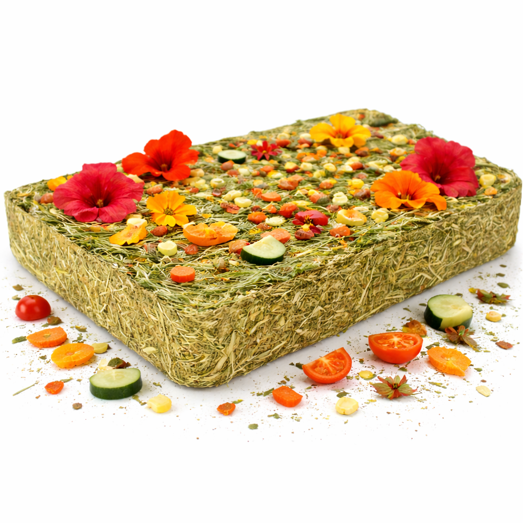 Složení: Celé rostliny divokých květin, bylin a trav (pampeliška, jitrocel kopinatý, sedmikrásky, jetel červený, jitrocel kopinatý, heřmánek a hvězdnice obecná), mrkev 0,7 %, pastinák 0,4 %