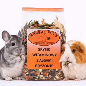 Vitaminová moučka s řasami je jedinečná směs přírodních složek, která poskytuje hlodavcům nezbytné vitamíny a minerály ve snadno stravitelné formě. Mořské řasy obsažené v produktu jsou zdrojem železa, vápníku, jódu a fluoru a zároveň představují chutnou pochoutku pro křečky, krysy, myši, morčata a činčily.