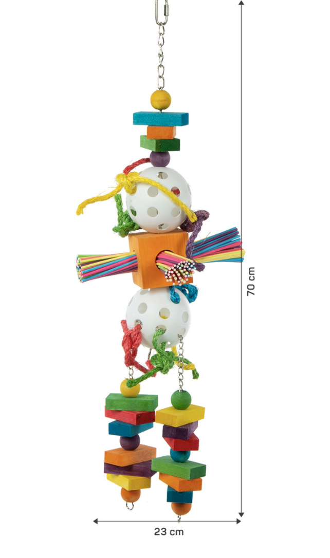K výrobě hraček byly použity materiály nejvyšší kvality a především bezpečné pro papoušky. Neobsahují chemické ani toxické látky ani umělá barviva. Jsou vyráběny z certifikovaných materiálů, které byly pečlivě vybrány.