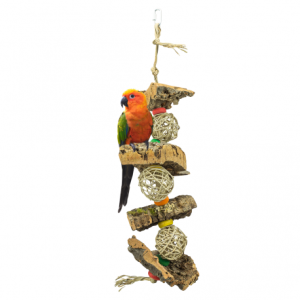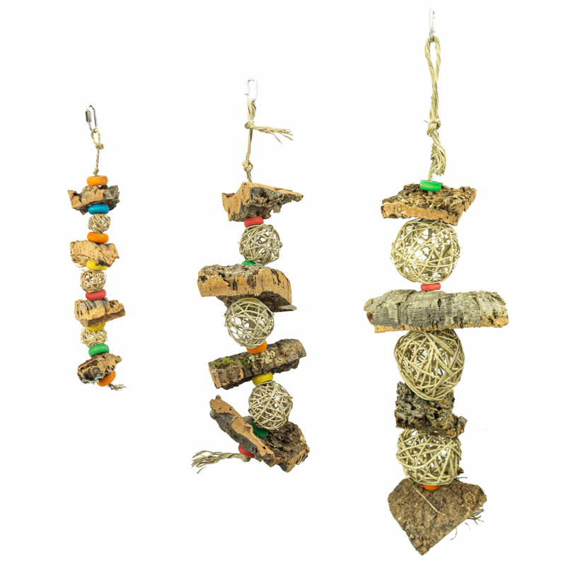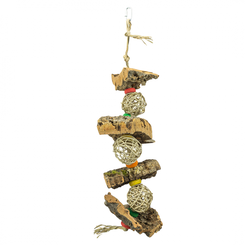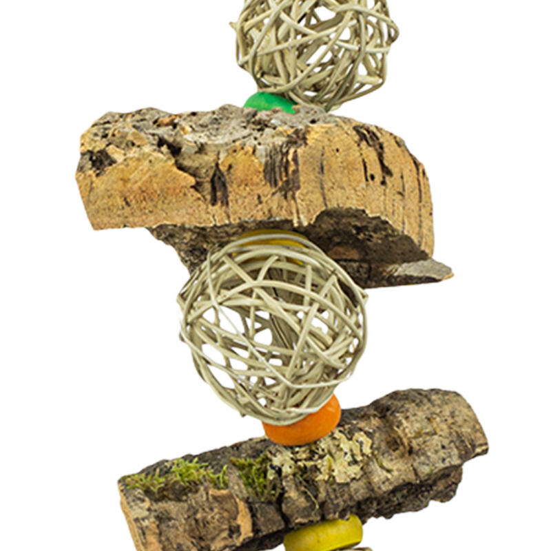V naší hračce slouží korkový dub jako přírodní, zcela bezpečný materiál pro udržení zobáku v perfektním stavu.