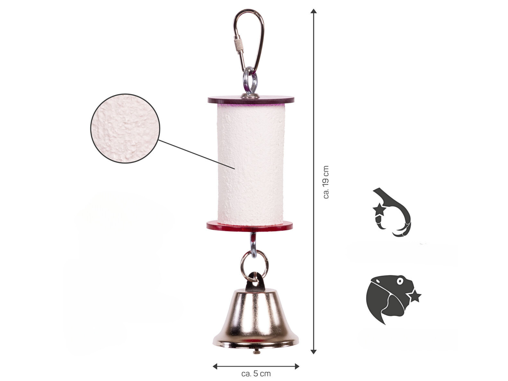 Závěsný pískovec se zvonkem L | Hračka zabraňující nadměrnému růstu zobáku | pro střední a velké papoušky