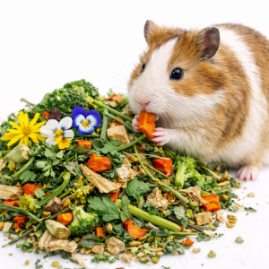Zeleninová pochoutka pro králíky a morčata je aromatická směs zeleniny a bylin, která zpestřuje každodenní jídelníček a podporuje chuť k jídlu. Složení bylo vybráno tak, aby respektovalo přirozené výživové potřeby malých býložravců a nabízelo pestrou škálu chutí.