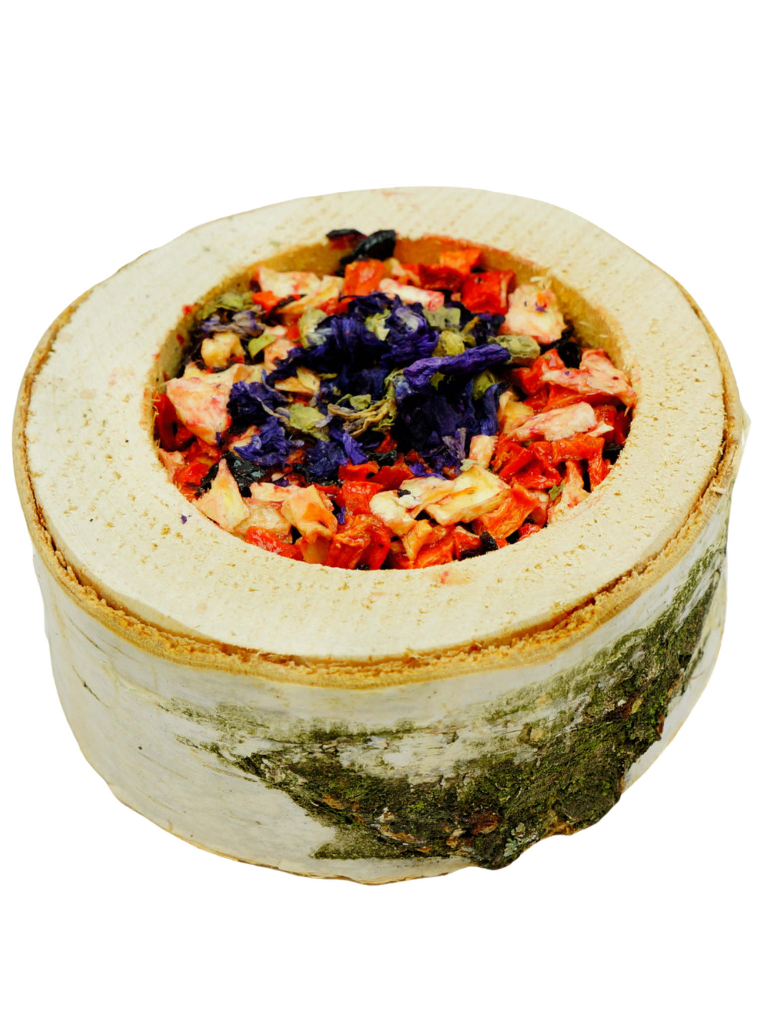 Zeleninová rozkoš - je zdravá pochoutka, ideální pro papoušky. Přírodní zelenina dodává nezbytné vitamíny a minerály a zároveň představuje zajímavou formu zábavy. Překvapte svého okřídleného přítele touto jedinečnou pizzou!