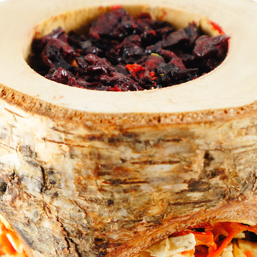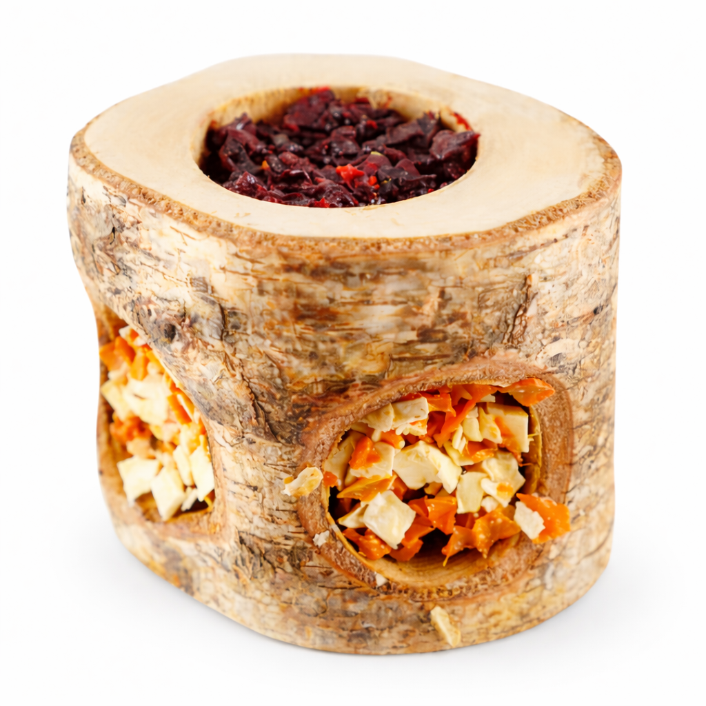 Zeleninové dřevěné kousky jsou přírodní lahodná pochoutka plněná mrkví, pastinákem, řepou a škrobem.