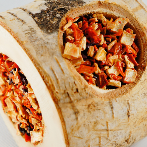 Zeleninový špalík, přírodní dřevěná pochoutka, plněná polskou zeleninou v té nejlepší kvalitě.