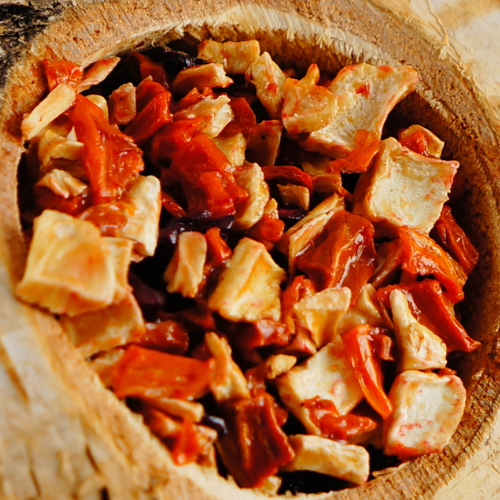 Pieniek obsahuje směs zeleniny, kterou papoušci milují a která zároveň skvěle doplňuje stravu našich svěřenců o nezbytné přírodní vitamíny a minerály.