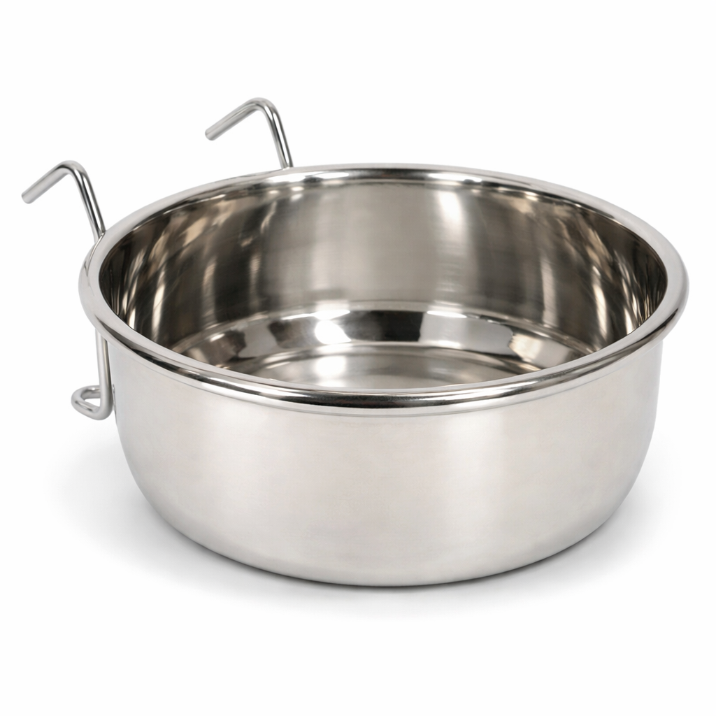 Je vyrobena z nerezové oceli, která je odolná vůči poškození, snadno se čistí a je bezpečná pro papoušky. Hladký povrch omezuje ulpívání zbytků krmiva a usnadňuje udržování čistoty.